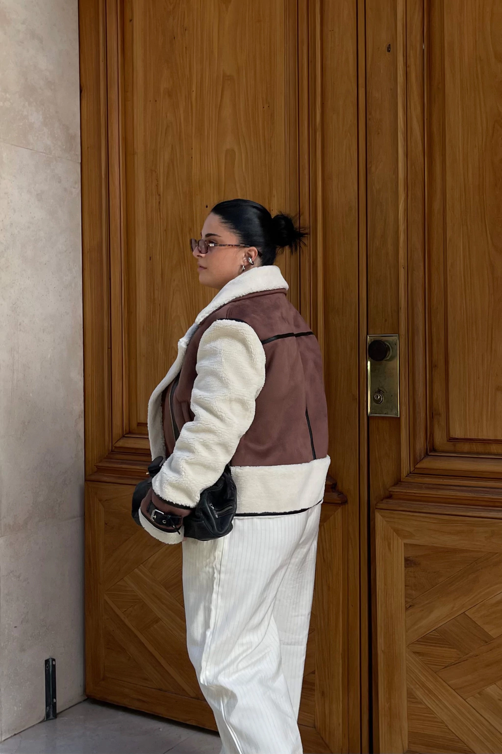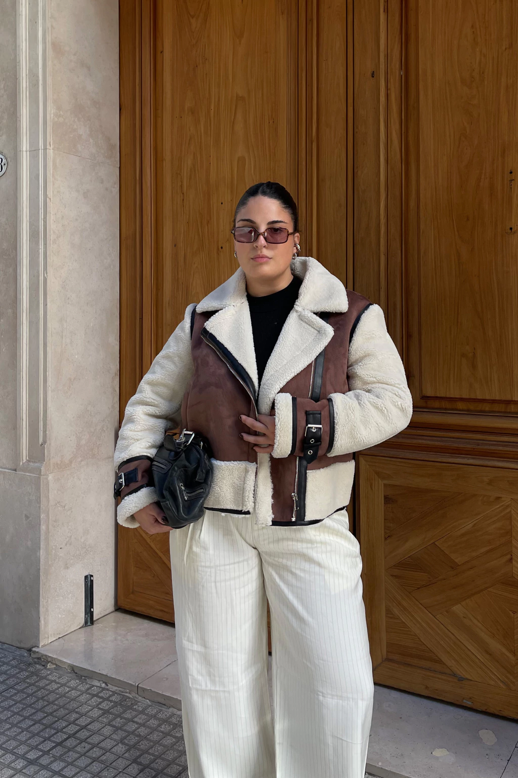 Este gamulán cuenta con cierres metálicos y bolsillos súper amplios. Sus mangas, puños e interior están revestidos en corderito crudo, brindando una sensación de abrigo incomparable.